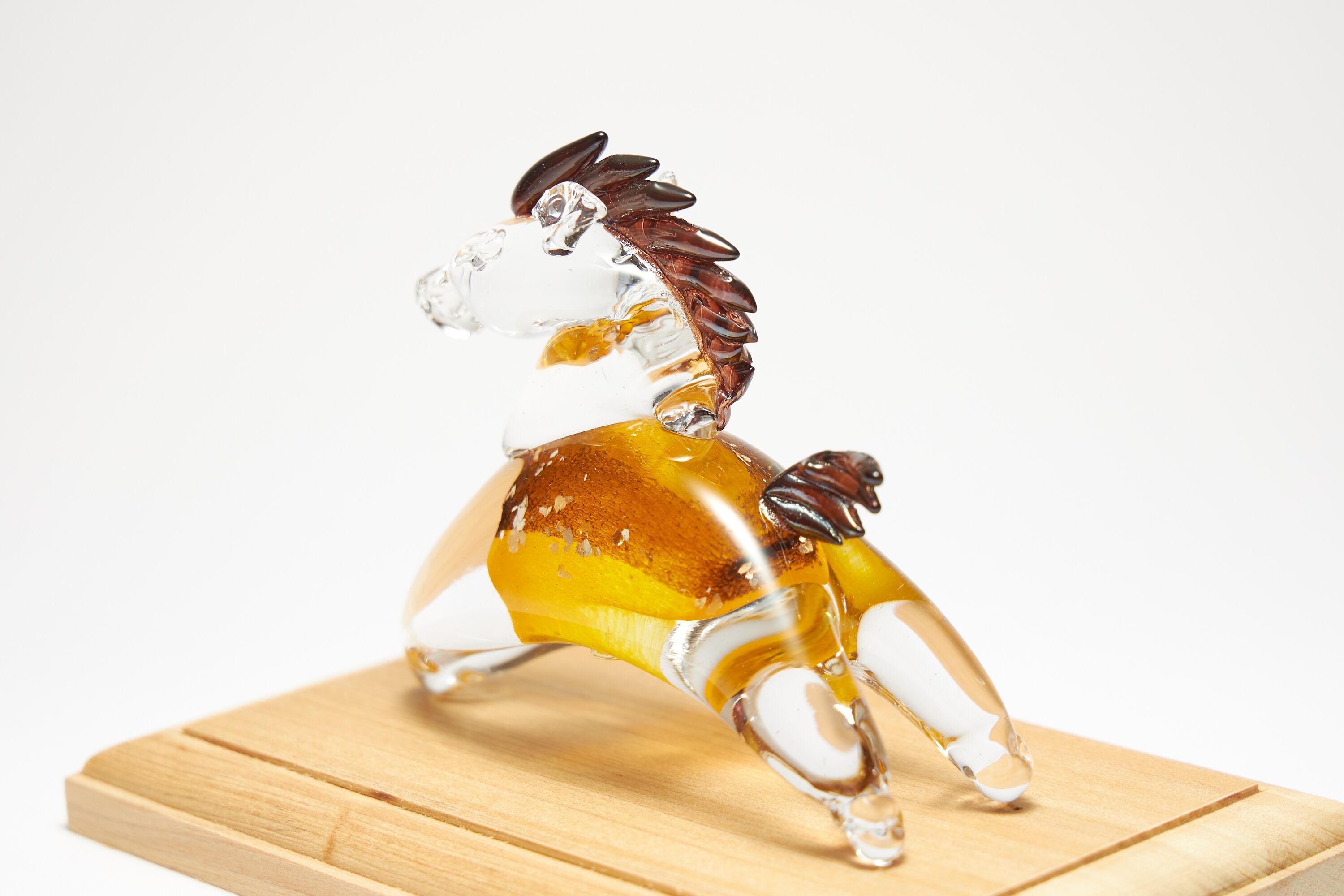 私自身、ガラスという素材の柔らかさが大好きなので、午特有のしなやかな体のラインを柔らかなガラスで表現しました。疾走しているような駿馬をイメージして制作しています。
